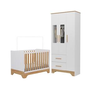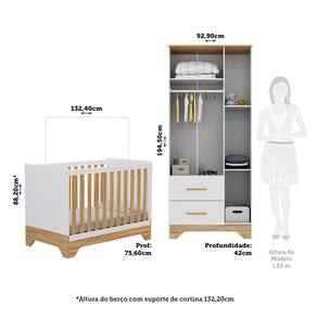 Caracter?sticas do Guarda Roupa: Estrutura 100 MDF Acabamento pintura UV at?xica 3 Portas Com janela 2 Gavetas Caracter?sticas do Ber?o: Estrutura: 100 MDF Acabamento: Pintura UV At?xica Espessuras: Estrutura 12mm, Barra das Grades 25mm Tipo de Estrado: Regul?vel em 2 posi??es -22 e 54 - cm- Op??es de montagem: Pode montar como ber?o, minicama ou minissof? Tamanho do Colch?o Indicado -LxC - cm-: 70 x 130 -Infantil Americano- Certificado INMETRO: Ber?o Popy Retr? 008091/2021 Suporta at?: 40kg