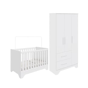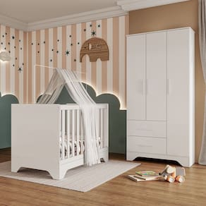 Quarto de Bebê Guarda Roupa e Berço 3 em 1 100 MDF Popy Móveis Peroba - Branco