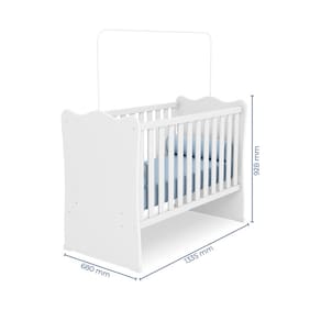 Caracteristicas do Berco: Marca: Qmovi Modelo: Doce Sonho Registro INMETRO: 007 190/2017 Material: MDP 15/DF Acabamento: Pintura UV Escala de Brilho: Brilho/Toque fosco Berco padrao nacional -60cm- Medida para colchao: 60cm x 130cm Grades fixas feitas em MDF de 12mm e 25mm Acabamento das bordas em perfil PVC Estrado em MDF de 6mm e travessas em MDF de 25mm Peso suportado: 40Kg -Distribuidos e sem impactos-