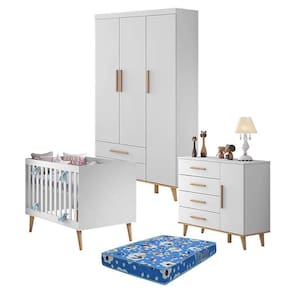 Quarto de Bebê Ludmila Branco Bétula com Colchão Ortobom – Carolina