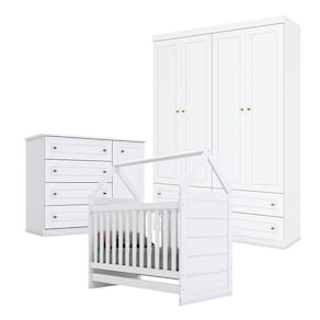 Quarto de Bebê Mississipi 4 Portas com Berço Montessoriano Americano Branco HP - Henn