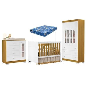 Quarto de Bebê New Katatau Branco Acetinado Savana com Colchão Ortobom? Reller