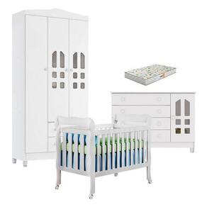 Quarto de Bebê New Selena 3 Portas com Berço Lila e Cômoda Gran Selena Branco Brilho e Colchão Gazin Carolina Móveis