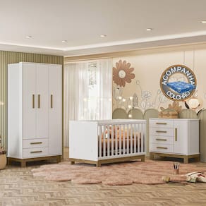 Características Estrutura em MDP Acabamento em pintura UV Acetinada Atóxica Grades de proteção fixas feitas em MDF Estrado em MDF regulável em três alturas Acompanha suporte para mosquiteiro Berço 2 em 1 - Pode ser montado no modelo Mini Cama Suporta até 40 kg. ACOMPANHA COLCHÃO 130 X 70 04 Portas articuladas 06 Gavetas externas Prateleiras internas com amplo espaço Cabideiro oblongo metálico Gavetas com corrediças netálicas Puxadores duplos de 250mm em MDF Portas com dobradiças metálicas Pés em MDF de 25mm Sistema anti-tombamento para evitar riscos de acidentes.