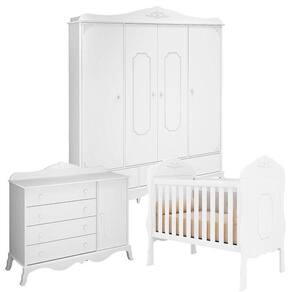 Quarto de Bebê Realeza 4 Portas Cômoda 1 Porta Branco Acetinado Canaã