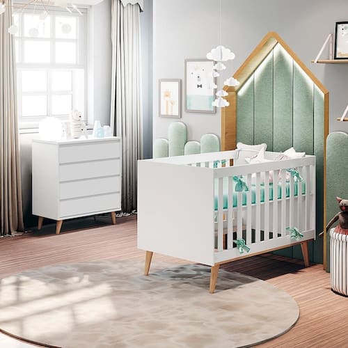 Um produto 3 em 1 para cuidar e proteger o seu filho por mais tempo, o berço também serve como mini-cama e mini-sofá. A cômoda Lorena faz o joguinho perfeito e oferece todo apoio para organizar os objetos do seu baby ao seu alcance de forma prática e segura. Estes produtos se encontram disponíveis nas cores Branco Fosco com Bétula, Cinza Fosco e Rosa Fosco.