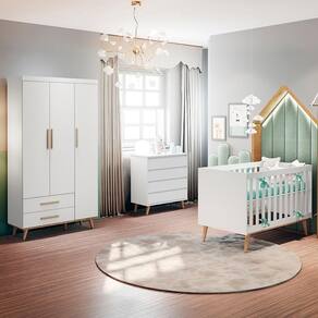 Peças produzidas em MDP e MDF de alta resistência mecânica e durabilidade. O berço 3 em 1 serve também como mini-cama e mini-sofá, a cômoda fraldário vem com travas anti-tombamento, e o guarda-roupa 3 portas tem o seu espaço interno dividido com cabideiro, prateleiras e gavetas. Estes produtos se encontram disponíveis nas cores Branco Fosco, Cinza Fosco e Rosa Fosco.