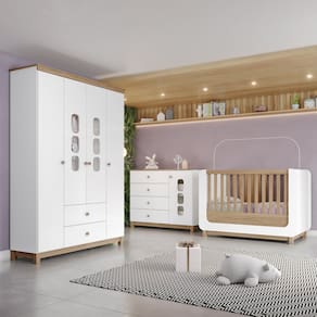 "Esse Quarto de Bebê é composto pelo Berço, Guarda Roupas e Cômoda Aconchego. Diferenciais do Berço: - 2 em 1: Berço e Minicama. - Estrado com duas regulagens de altura. - Grades Fixas com Bordas Arredondadas. - Cantos Arredondados. - Pés em MDF Revestidos. - Detalhes Usinados. - Pintura Atóxica. Diferenciais do Guarda Roupas: - Portas Janeladas com Vidro. - Puxadores em Madeira com pintura. - Gavetas com Corrediças Metálicas. - Cabideiro em Alumínio. - Pés em MDF Revestidos. - Chapéu com Acabamento Soft. Diferenciais da Cômoda: - Porta Janelada com Vidro - Puxadores em Madeira com pintura. - Gavetas com Corrediças Telescópicas. - Pés em MDF Revestidos." Acompanha Manual de Instalação: Sim Altura do Conjunto: 200 cm Ambiente Principal: Quarto de Bebê Certificado: 002 747/2024 Certificado INMETRO (código): 002 747/2024 codigo_ean: 7900288221841 Complexidade da Montagem: Alta: deve ser montado por um montador especializado Cor: Branco Cor do Produto: Branco Cor Interna: Trama Branco (Branco Acinzentado) Escala de Brilho: Fosco Escala de Brilho da Porta: Fosco Escala de Brilho da Prateleira: Fosco Largura do Conjunto: 150 cm Linha ou Coleção: Aconchego Manual de Montagem e Instalação: https://product-hub-prd.madeiramadeira.com.br/880786284/documents/ebaaff79-c0fb-461c-b39b-8d0250a084613174142326617567533231864.pdf Marca: Henn Material da Gaveta: MDF/MDP Material da Porta: MDF/MDP Material da Prateleira: MDF/MDP Material do Estrado: MDF/MDP Material do Fundo: MDF/MDP Material do Puxador da Gaveta: Madeira Maciça Material do Puxador da Porta: Madeira Maciça Material Principal: MDF/MDP Medida de Cada Item: (Berço AxLxP) 102cm X 146cm X 77,5cm (Roupeiro AxLxP) 200 X 150 x 45cm(Cômoda AxLxP) 103cm X 126,5cm X 51cm modular: Não Necessita Montagem: Sim Origem do Produto: Nacional Peso: Roupeiro: 88kg Cômoda: 49kg Berço: 45kg Peso de Cada Item: Roupeiro: 88kg; Cômoda: 49kg; Berço: 45kg Porta Janelada: Sim Possui Certificado: Sim Possui Espelhos: Não Possui Gavetas: Sim Possui Portas: Sim Possui Prateleiras: Sim Possui Rodízio: Não Profundidade do Conjunto: 45 cm Quantidade de Gavetas: 06 Quantidade de Portas: 05 Quantidade de Prateleiras: 10 Recomendações de Uso, Manutenção e Limpeza: Para limpeza de seu móvel, use uma flanela seca ou umedecida. Não utilize produtos químicos que possam danificar o produto. Sistema de Montagem: Parafusos e cavilhas Tipo de Corrediça da Gaveta: Metálica Telescópica Tipo de Dobradiça/Corrediça da Porta: Metálica Tipo de Porta: Bater Tipo de Puxador da Gaveta: Externo Tipo de Puxador da Porta: Externo