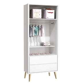 Guarda Roupa Infantil Theo 2 Portas Branco Acetinado com Pés Madeira Natural Reller