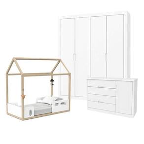 Quarto de bebê Tutto New 4 Portas e Mini Cama Montessoriana Liv Branco Soft Natural - Matic