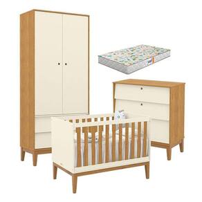 Quarto de Bebe Unique 2 Portas com Cômoda Gaveteiro Off White Freijó Eco Wood e Colchão Gazin - Matic