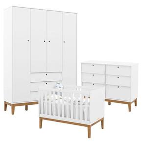 Quarto de Bebe Unique 4 Portas com Cômoda 6 Gavetas Branco Soft Eco Wood - Matic