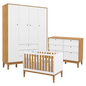 Quarto de Bebe Unique 4 Portas com Cômoda 6 Gavetas Branco Soft Freijó Eco Wood - Matic