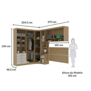Informacoes Complementares: Dobradicas reforcadas. Guarda Roupa de Canto necessita de recuo para montagem. Consulte o manual de montagem. Alguns modulos podem ser montados com abertura para o lado Direito ou Esquerdo. Consulte o manual de montagem. Indicado para uso com Cama/Conjunto Box Casal/Queen -165cm-. Cama/Box nao acompanha o ambiente, a imagem e meramente ilustrativa.
