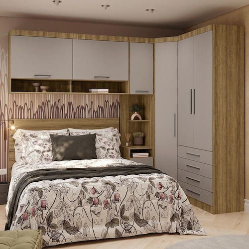 Ambiente composto por: 1 Mesa de Cabeceira Alta 38cm 1 Porta e 1 Gaveta Paris Luciane Moveis 230 x 38 x 41,5 (Alt x Larg x Prof - cm) 1 Painel Cabeceira Queen 165cm Uni Alpes Paris Luciane Moveis 90 x 165 x 1,5 (Alt x Larg x Prof - cm) 1 Armario Aereo Maleiro Modulado 165cm 2 Portas Basculantes Paris Luciane Moveis 82 x 165 x 41,5 (Alt x Larg x Prof - cm) 1 Guarda Roupa de Canto Diagonal Modulado 70cm 1 Porta Paris Luciane Moveis 230 x 70 x 70 (Alt x Larg x Prof - cm) 1 Guarda Roupa Modulado 90cm 2 Portas e 4 Gavetas Paris Luciane Moveis 230 x 90 x 46,5 (Alt x Larg x Prof - cm)