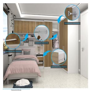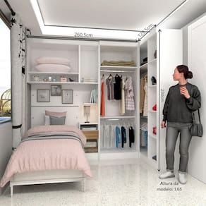 Informações Complementares: Dobradiças reforçadas. Guarda Roupa de Canto necessita de recuo para montagem. Verifique a planta baixa. Alguns módulos podem ser montados com abertura para o lado Direito ou Esquerdo. Consulte o manual de montagem.