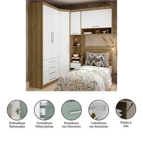 Quarto De Canto Solteiro Com Guarda Roupas Cabeceira Paris Luciane Móveis Avelã Pf Com Branco Pf A linha de modulados Paris oferece diversas solucoes para o seu projeto, com design clean proporciona ao seu quarto ficar moderno e elegante. Os modulos sao multifuncionais e podem ser montados conforme a sua disponibilidade de espaco. Caracteristicas: Estrutura: 100 MDP Acabamento: PF Quantidade de Portas: 5 Tipo de Abertura das Portas: 4 de Bater e 1 Basculante Quantidade de Gavetas: 5 Tipo de Corredicas: Telescopica Quantidade de Prateleiras: 6 Quantidade de Nichos: 1 Tipo de Cabideiros: 1 em Aluminio Tipo de Puxador: Plastico PS Champagne Tipo de Pes: Rodape Sistema de Montagem: Cavilhas, Parafusos e Minifix Garantia: 3 meses