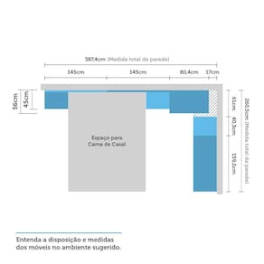 Cabeceira Luciane Casal Prime Plus Painel 145 cm Dimensões: Altura: 90 cm Largura: 145 cm Profundidade: 1.5 cm Peso: 10 Kg