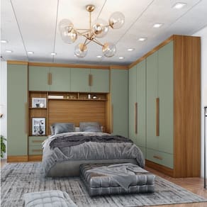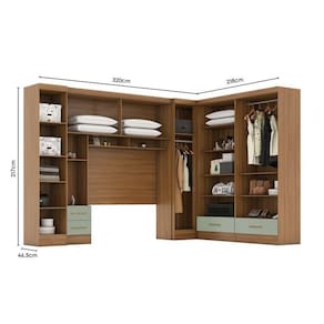 1x Módulo Closet Smart Aéreo com Criado 2 Gavetas com Maleiro Expresso Movéis Cinamom /Verde Largura: 185,6 cm Altura: 217 cm Peso: 64,75 kg Profundidade: 40 cm Necessita Montagem: Sim