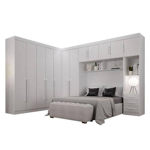 Quarto de Casal Modulado 12 Portas Orion Branco Leifer Móveis