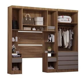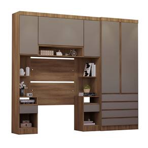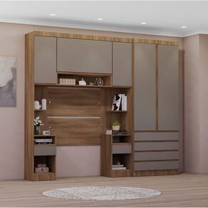 Ambiente composto por: - 2 Mesas de Cabeceira Alta 1 Porta e 1 Gaveta -230 x 38 x 41,5- cada - 1 Armario Aereo Maleiro Modulado 2 Portas -82 x 97 x 41,5- - 1 Guarda Roupa Modulado 2 Portas e 4 Gavetas -230 x 90 x 46,5- - 1 Painel Cabeceira Solteiro -90 x 97 x 1,5-