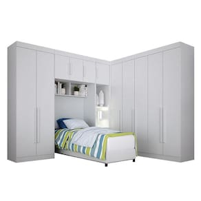 Quarto de Solteiro Modulado 11 Portas Orion Branco – Leifer Móveis