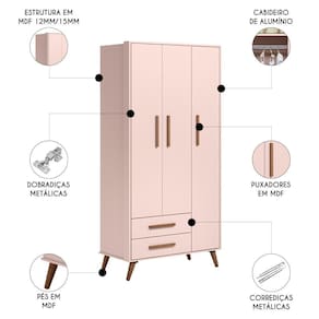 Manual: Sim | OriginCountry: | ProductContents: 1 Guarda Roupa 1 Cômoda 1 Berço. | Gênero: Unisex | Largura: 94 cm | Origem: | ProductHeight: 190 | Profundidade: 47 cm | Cor: Rosa | Peso: 126 kg | ProductWeight: 126 | SupplierSimpleName: Quarto Infantil 3 Peças com Berço Retrô Rosa - Qmovi | OriginState: PR | Material: MDF | ColorSupplier: Rosa | ProductInstructions: Produto para uso em ambiente interno, nao devendo ficar exposto ao sol, calor e umidade excessivos. | ColorFamily: Rosa | Requere montagem: Sim | SizeDescription: 190 x 94 x 47 cm | ProductLength: 47 | AssemblyRequired: Sim, sugerimos a contratação do nosso de montagem (para os CEPs em que o está dispon | MaterialFamily: MDF | Model: | ProductWarranty: 90 dias após o do produto | ProductWidth: 94 | Color: Rosa | Altura: 190 cm | ColorSimple: Rosa