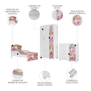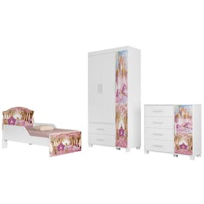 Jogo de Quarto Infantil Com Mini Cama 3 Peças Carruagem Rosa Z53 - Mpozenato