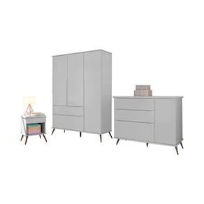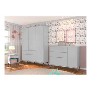 Quarto Infantil Bebê Melinda Cômoda Guarda Roupa Mesa de Apoio Cinza - Phoenix Baby