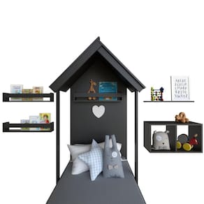 Quarto Infantil Cama Nicho Prateleira e Revisteiros Bramov Móveis Preto. Os Móveis devem ser escolhidos com muito carinho, independente de qual for o ambiente, pois eles fazem parte da rotina do dia a dia do nosso lar ou trabalho. Portanto, na hora de decidir qual modelo, lembre-se: além de ter a ergonomia necessária, a medida ideal, um design incrível, eles também devem cumprir suas funções com desempenho total, e na hora da escolha das cores, elas devem combinar com seu estilo e personalidade. Os Móveis para Ambiente Infantil da Bramov Brasil possuem um design encantador, que permite trazer outros elementos decorativos para compor o ambiente. Ean: 7908506287129