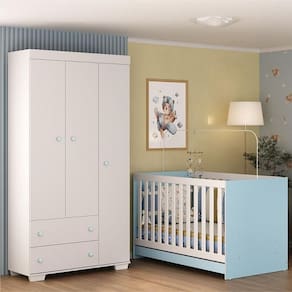 Produzido em MDP com acabamento acetinado (cerca de 20% de brilho), o Quarto Infantil com Berço Colchão Incluso e Guarda-Roupas Algodão Doce Multimóveis MP4248 oferece durabilidade e facilidade na limpeza. Com design versátil, o berço se transforma em minicama e sofá, proporcionando praticidade e economia a longo prazo. A grade Soft (PVC) é com matéria-prima livre de metais pesados, atóxica e com proteção antiamarelamento, enquanto o lastro em madeira maciça possui 3 regulagens de altura para o colchão. Além disso, o berço acompanha suporte para mosquiteiro e suporta até 35kg (50kg como minicama ou sofá). Acompanha colchão de espuma (D28) com tratamento antiácaro, antialérgico, antimofo e um dos lados impermeável. Berço certificado pelo INMETRO sob o selo n 0000085/2018. Já o guarda-roupas (espessura de 12mm) possui 3 portas com dobradiças metálicas, 2 gavetas com corrediças metálicas (maior leveza no manuseio) e sistema antitombamento (maior segurança para o bebê). Acompanha 3 opções de cores para os puxadores em ABS (branco, azul e rosa), pés em polipropileno, que asseguram maior estabilidade, e cabideiro de uso opcional. Este conjunto agrega funcionalidade e elegância para o cantinho da criança.