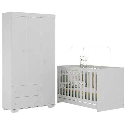 Conteúdo da Embalagem: 1 (um) Berço 1 (um) Colchão 1 (um) Guarda-Roupas Manual de Montagem Kit Ferragem