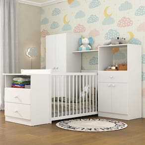 O Quarto Infantil com Berço 3 em 1 Luíza Multimóveis é produzido em MDP, que garante maior durabilidade e resistência, e possui acabamento acetinado (cerca de 20% de brilho). O berço é padrão nacional (tamanho do colchão 1,30 x 0,60), possui 3 regulagens de altura para o colchão e acompanha suporte para mosquiteiro, que garante noites mais tranquilas de sono para o bebê. A cômoda acoplada (não é possível montar separadamente) possui 2 gavetas com corrediças metálicas, que proporcionam mais leveza no manuseio e um nicho para deixar o quartinho organizado. Compacta e versátil, esta linha conta módulos individuais e você pode montar da maneira que se adaptar melhor ao seu espaço. Berço Certificado pelo INMETRO sob o Selo n 012251/2022. Não acompanha colchão.
