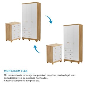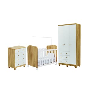 Quartinho completo, criado para um momento todo especial. Elaborado com produtos que tornam seus momentos praticos e confortaveis. Com um Guarda Roupa 3 Portas e 3 gavetas, prateleiras internas e cabideiro para acomodar as roupinhas e objetos do uso diario. O Berco com padrao Americano e certificado pelo Inmetro e conta com 4 rodizios sendo 2 com travas, suporte para mosquiteiro e estrado com 3 regulagens de altura. A Comoda contem 4 gavetas, tambem pode ser utilizada como trocador.