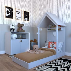 Quarto Infantil com Cama e Armário Espresso Móveis Cinza Cristal. Os Móveis devem ser escolhidos com muito carinho, independente de qual for o ambiente, pois eles fazem parte da rotina do dia a dia do nosso lar ou trabalho. Portanto, na hora de decidir qual modelo, lembre-se: além de ter a ergonomia necessária, a medida ideal, um design incrível, eles também devem cumprir suas funções com desempenho total, e na hora da escolha das cores, elas devem combinar com seu estilo e personalidade. Os Móveis para Ambiente Infantil da Bramov Brasil possuem um design encantador, que permite trazer outros elementos decorativos para compor o ambiente. Ean: 7908506298477