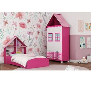 Quarto Infantil com Cama e Guarda-roupa Casinha