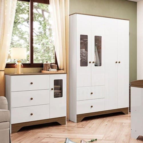 Ambiente composto por: - 1 Guarda Roupa Infantil 4 Portas com Janelas Retangulo e 2 Gavetas 100% MDF 194,5 x 123,2 x 42 (AxLxP - cm) - 1 Cômoda Infantil 1 Porta Janelas Retangulo 3 Gavetas 100% MDF 89,4 x 92,9 x 42 (AxLxP - cm) Altura do Conjunto: 194.5 cm Ambiente: null Ambiente Principal: Quarto Infantil Cor: Branco Brilho/Carvalho Informação Complementar: 1x Cômoda Infantil 1 Porta com Janela Retangulo e 3 Gavetas 100% MDF Cocada Branco Brilho/CarvalhoLargura: 92,9 cmAltura: 89,4 cmPeso: 34,2 kgProfundidade: 42 cmNecessita Montagem: Sim1x Guarda Roupa Infantil 4 Portas com Janelas Retângulo 2 Gavetas 100% MDF Cocada Branco Brilho/CarvalhoLargura: 123,2 cmAltura: 194,5 cmPeso: 6,74E+15 kgProfundidade: 42 cmNecessita Montagem: Sim Material Principal: MDF Possui Portas: Sim