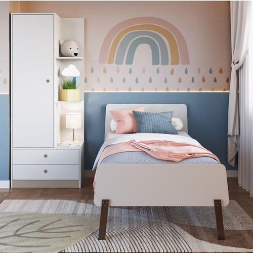 1x Cama Infantil/Juvenil Solteiro Léo Branco Largura: 193,4 cm Altura: 85 cm Peso: 17,5 kg Profundidade: 97 cm Necessita Montagem: Sim