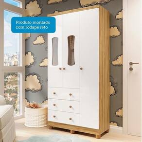 Qualidade, beleza, conforto e segurança para toda família na hora de montar o quartinho do(a) bebê. Produtos estrurados em 100% MDF e com acabamento em pintura UV atóxica proporcionando uma sensação agradável ao toque. As gavetas deslizam suavemente por corrediças telescópicas, facilitando sua abertura, interno com prateleiras que são ideais para acomodar as peças com organização da sua preferência. Essa proposta é a queridinha do momento. Ambiente composto por: - 1 Guarda Roupas 3 Portas com Janelas 188,50 x 91,90 x 41,50 (A x L x P - cm) - 1 Cômoda 1 Porta 4 Gavetas 88 x 95,30 x 42,30 (A x L x P - cm)
