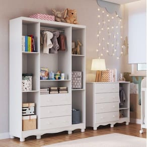 Linha ou Coleção: Mimo Material Principal: MDF Necessita Montagem: Sim Origem do Produto: Nacional Possui Rodízio: Não Recomendações de Uso, Manutenção e Limpeza: Para limpeza utilizar somente pano limpo e macio, ligeiramente umedecido em água (apenas o bastante para remover a poeira), seguido de um pano seco. Sistema de Montagem: Parafusos autoatarraxantes, conjuntos minifix, cavilhas de madeira, acessórios plásticos e metálicos. Suporta Até (kg): 30.0000 Tipo de Guarda-Roupa: Bebê Ean: 7909903183045