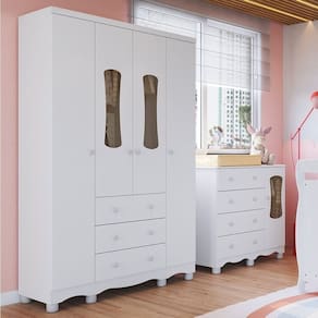 - 1 Guarda-Roupas 4 Portas com Janelas e 3 Gavetas
