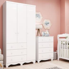 O Guarda Roupa da linha Junior ? produzido 100 em MDF, possui 03 portas, cabideiro met?lico, puxadores pl?sticos, corredi?as Telesc?pica p? pl?stico j? incluso.Produto com facilidade na montagem, volumes bem embalados e com seguran?a. C?moda 4 Gavetas Junior Peroba.A C?moda J?nior simples tem o tampo com as bordas laqueadas, os puxadores s?o de pl?sticos, as corredi?as s?o met?licas, p?s pl?sticos j? est?o incluso, c?moda s? com gavetas. Facilidade na montagem, volumes bem embalados e seguran?a na embalagem. Produtos 100 em MDF.