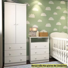 Quarto Infantil com Guarda Roupas 2 Portas 3 Gavetas e Cômoda 3 Gavetas Teka Espresso Móveis Branco Brilho. Quarto de Bebê com Cômoda e Guarda Roupa Teka A alegria de ter uma bebê no seu lar é uma sensação incrível e para recebe-los os pais sempre buscam a melhor forma de conforto que podem oferecer. Foi pensando nessa proposta que esse conjunto foi desenvolvido. São produtos em 100% MDF e com pintura atóxica. As gavetas possuem corrediças metálicas e puxadores em plástico, suportando até 4kg por gaveta. O guarda roupas possui cabideiro metálico e prateleira para melhor organização das roupinhas. Aproveite para garantir esse conforto para o seu bebê você também. Ean: 7909903171622
