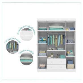 Este lindo Dormitório Helena vai encantar ainda mais o seu ambiente. Projetado para acompanhar todo o desenvolvimento infantil, dispõe de um Roupeiro com 04 Portas e 02 Gavetas além de uma Cômoda com 01 Porta e 04 Gavetas. Produzido 100% em MDP e pintura UV Alto Brilho atóxica proporcionando mais qualidade e durabilidade ao produto. As Corrediças Telescópicas promovem um deslizamento suave, silencioso e muito mais resistente. Há também cabideiros inclusos que favorecem a organização e otimizam o espaço. É sem dúvidas o Conjunto Perfeito para compor o ambiente mais importante do seu bebê com conforto, segurança e delicadeza. Altura do Conjunto: 203 cm Ambiente Principal: Quarto Infantil Complexidade da Montagem: Média: pode ser montado por mais de uma pessoa e/ou necessite de maior conhecimento para montagem Cor: Branco Cor do Produto: Branco Escala de Brilho: Brilhante Manual de Especificação Técnica: https://cdn2.madeiramadeira.com.br/atributo/phoenix-baby/1279247-gr-helena-4pta.pdf Manual de Montagem e Instalação: https://cdn2.madeiramadeira.com.br/atributo/phoenix-baby/1279248-gr-helena-4pta.pdf Material Principal: MDP Medida de Cada Item: Guarda Roupa: 203cm x 147cm x 45cm Cômoda: 92cm x 105cm x 45cm Necessita Montagem: Sim Origem do Produto: Nacional Peso: 123.75 Pintura Atóxica: Sim Recomendações de Uso, Manutenção e Limpeza: Pano seco Sistema de Montagem: Parafuso Suporta Até (kg): 75