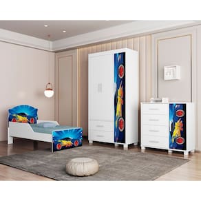 Quarto Infantil Completo Carros – Cama + Guarda-Roupa + Cômoda