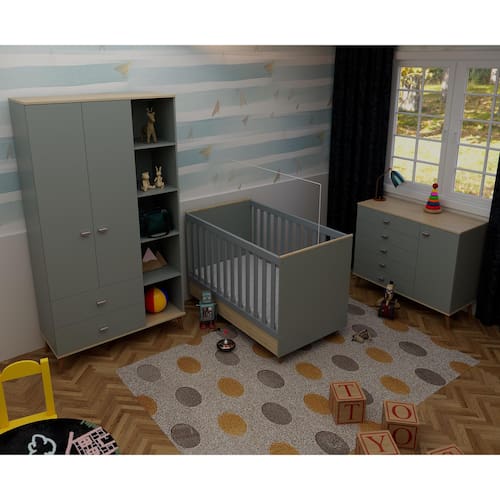 Transforme o quarto infantil em um ambiente completo, funcional e encantador com o Conjunto Ternura da Bartira, composto por guarda-roupa, cômoda e berço 2 em 1. Cada peça foi pensada para oferecer conforto, segurança e organização, com design moderno e acabamento sofisticado.