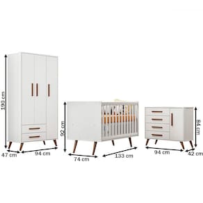 - Acompanha: Guarda-Roupa Infantil, Cômoda Infantil, Berço, Kit Ferragens e Manual de Montagem