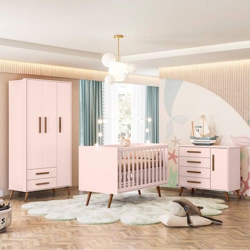 - Acompanha: Guarda-Roupa Infantil, Cômoda Infantil, Berço, Kit Ferragens e Manual de Montagem