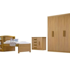 O Dormitório Angel conta com: 01 roupeiro 04 portas com excelente divisão interna, frente toda em MDF.A cama milênio 100% mdf, com baú de cabeceira, ideal para guardar objetos, brinquedos, e até mesmo roupa de cama, e ela também oferece a opção de cama auxiliar, comprada a parte. A cômoda possui 04 espaçosas gavetas e repartição lateral,frente em MDF. Confeccionada em chapa de 1,5cm, ela possui resistência e durabilidade. O dormitório Angel, é o quarto perfeito para seu filho.ATENÇÃO:A coloração das imagens do produto pode ter diferentes tonalidades dependendo do seu monitor.Ao receber o produto verifique as seguintes informações:Confira a quantidade de caixas e volumes;Consulte se o nome do comprador consta em todas as etiquetas;Verifique se as caixas não apresentam sinais de danos.
