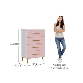 1x Cômoda para Quarto Infantil Magia Branco/Rosa Largura: 70,8 cm Altura: 110,2 cm Peso: 29,9 kg Profundidade: 40 cm Necessita Montagem: Sim